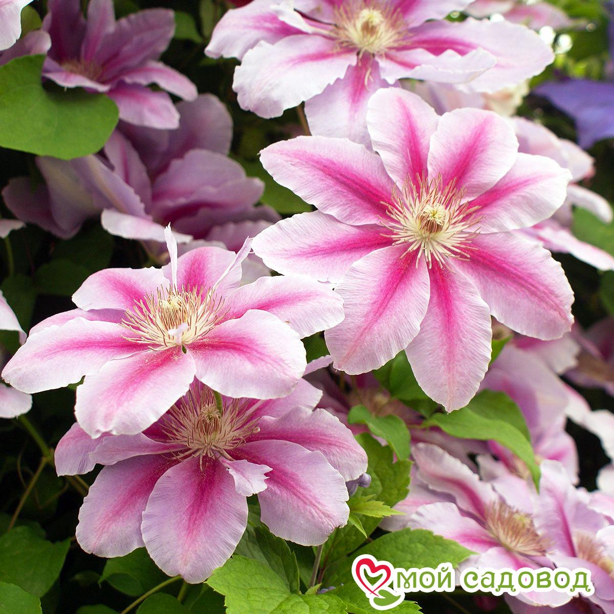 Это популярный крупноцветковый сорт с ранним сроком цветения. Выведен он в 1958 году, в Англии. С тех пор и до нашего времени многолетник не теряет популярности. Выращивают его практически повсеместно. Купить недорого качественные саженцы можно в интернет-магазине «Мой садовод». Как выглядит растение? В высоту лиана достигает 1,5 – 2,5 м. Цветение приходится на май – июнь. Возможна повторная волна в сентябре. Цветки окрашены в розово-лиловый цвет. Также по лепесткам проходят темно-розовые полоски. Тычинки бледно-коричневые. В солнечных местах цветки теряют насыщенность окраски. За опоры лиана цепляется листовыми черешками. Применение в ландшафтном дизайне Зачастую многолетник применяют в озеленении изгородей и балконов. Также он идеально подходит для декорирования цветочных клумб или плодовых деревьев. Приобретенные в питомнике саженцы размещают у садовых опор или среди кустарников. Советы по посадке и выращиванию Лиана хорошо себя чувствует в полутенистых местах. Грунт подойдет питательный, суглинистый или супесчаный. Идеально, если он насыщен перегноем, с низкой кислотностью. Переносить растения в сад нужно весной, традиционным способом. Первым делом выкапывается лунка размером 50 х 50 см. Далее на дно насыпают дренаж из дробленого кирпича или щебня. Саженец устанавливают по центру углубления и аккуратно засыпают корни землей. Последний шаг – обильный полив и мульчирование (опилками или древесной корой). Дополнительные орошения проводят ежедневно в течение 7 дней. Когда клематис приживется, расход воды уменьшают. Удобрения используют 3 – 4 раза за сезон. Положительные качества клематиса Биз Джубили К наиболее важным чертам сорта относятся: неприхотливость в уходе; интенсивный рост и развитие; высокая холодоустойчивость; доступная цена; способность к быстрому размножению. Купить недорого клематисы можно в интернет-магазине «Мой садовод». Просто отправьте понравившийся сорт в корзину, нажав на соответствующую кнопку. Мы бережно упакуем и максимально быстро доставим Вашу покупку ТК СДЭК или почтой России. Если возникнут вопросы или сложности с оформлением заказа, наши консультанты предоставят квалифицированную помощь. Мы гарантируем высокое качество посадочного материала и дорожим мнением каждого покупателя!