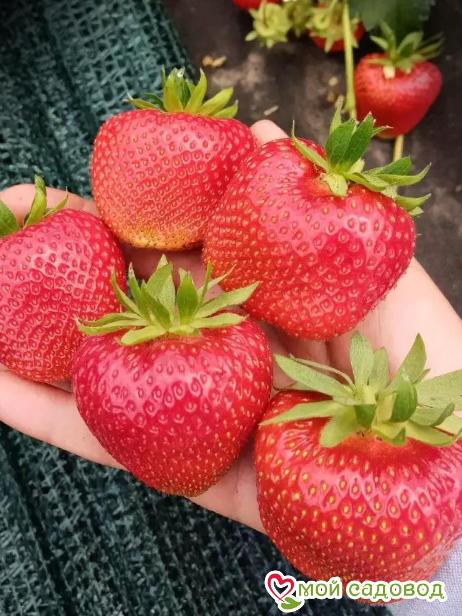 Клубника Верди — относится к самым ранним сортам земляники. Для растения характерными являются достаточно мощные кусты с достаточно массивными ягодами ярко-бордового цвета. Ягоды клиновидные и отличаются высоким уровнем производительности. Кустики  очень мощные и негусто усыпаны листьями. Для них характерны: высокий уровень морозоустойчивости и усиленная энергия роста. Чашечки на кустах земляники длинные, а листья представлены в форме чашечки с небольшими зубчиками по краям. Также они поблескивают на солнце. Достаточно длинные цветоносы во время формирования плодов, принимают полувертикальное положение. Ягоды имеют достаточно плотную, очень ароматную мякоть ярко-красного цвета. Снаружи плоды блестят на солнце, а самое главное, что вплоть до последнего сбора, ягоды не мельчают в размере. Что касается формы плодов, то при первом сборе вы получите клиновидные ягоды, а после, они приобретают форму конуса. Семена не сильно заглублены в мякоть. Клубника обладает восхитительными вкусовыми качествами. Если говорить о чашелистиках, то они по размеру немного крупнее самой ягоды. Плоды имеют одинаковую форму и вес. Максимальный вес ягод составляет от 30 до 35 г. Посадка и уход за клубникой Посадка: осенью (с середины августа до середины октября) и ранней весной Освещение: яркий солнечный свет Почва: легкая – суглинок, супесь, чернозем или лесные, богатые органикой грунты с водородным показателем pH 5,7-6,2 Полив: утренний, с конца апреля – один раз в 10-12 дней, расходуя на каждый м² участка 10-12 л воды Подкормки: минимум три раза в год: ранней весной, в период бутонизации и в августе Обрезка: когда листья начнут желтеть, покрываться пятнами и сохнуть, их обрезают Размножение: усами (розетками), делением куста
